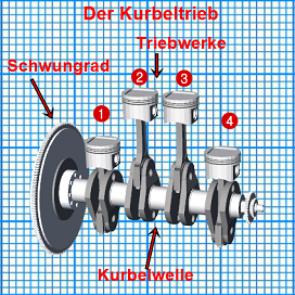 Der Kurbeltrieb soll die Wärmeenergie im Zylinderraum in mechanische Energie umwandeln.